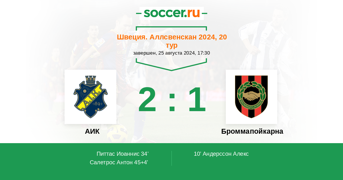 Протокол матча АИК против Броммапойкарна