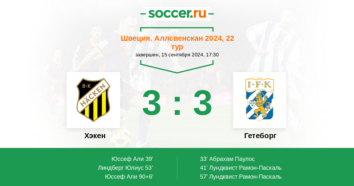 Протокол матча Хэкен против Гетеборг