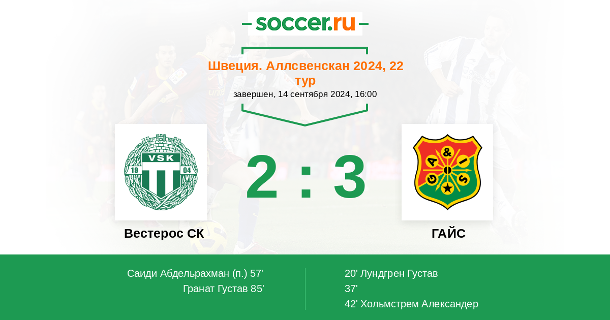 20' (0:1) Лундгрен Густав (9) (A. Henriksson)