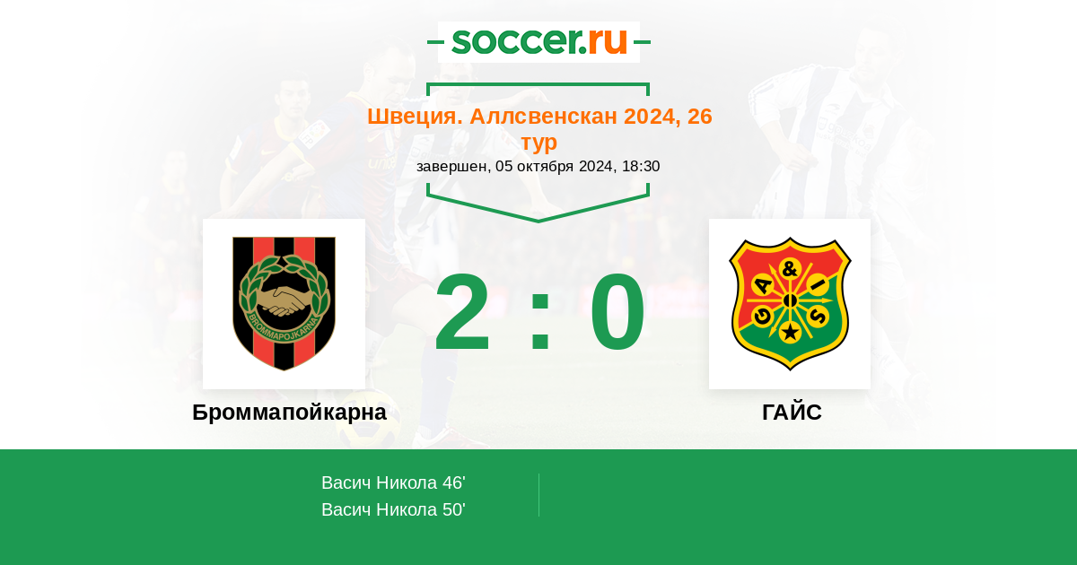 46' (1:0) Васич Никола (9) (Фритцсон Людвиг (13))