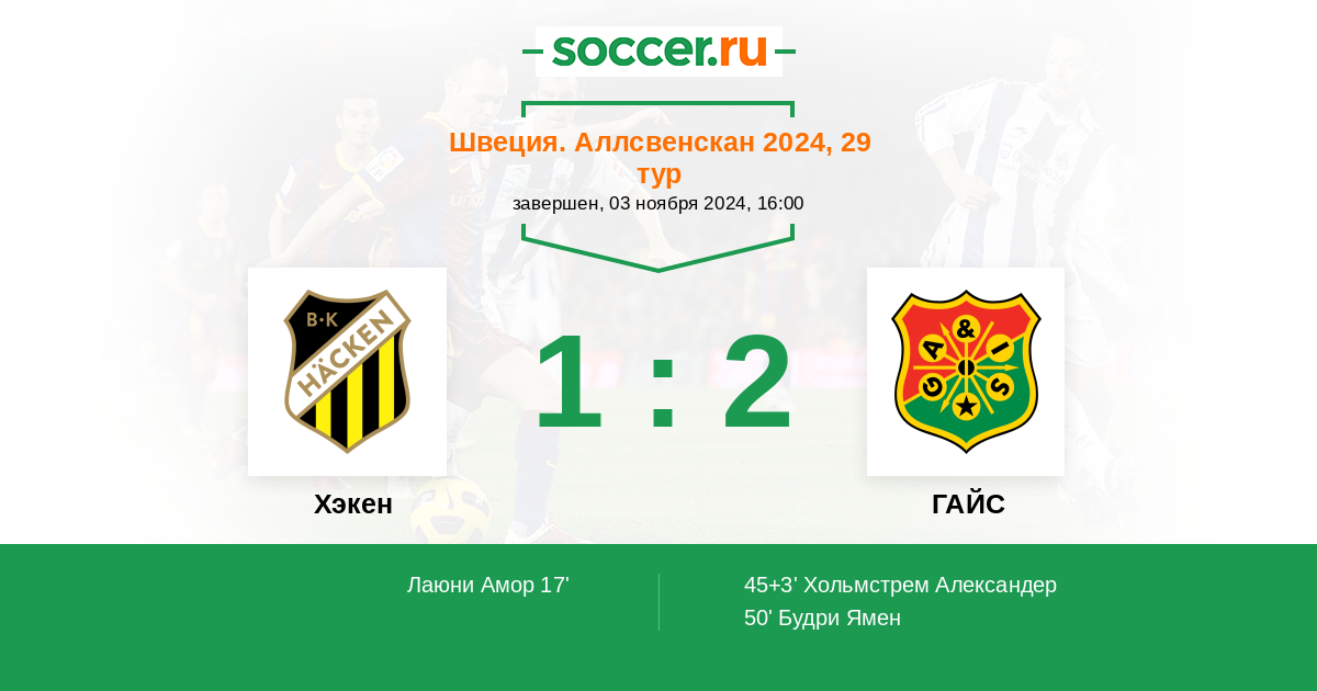 Протокол матча Хэкен против ГАЙС