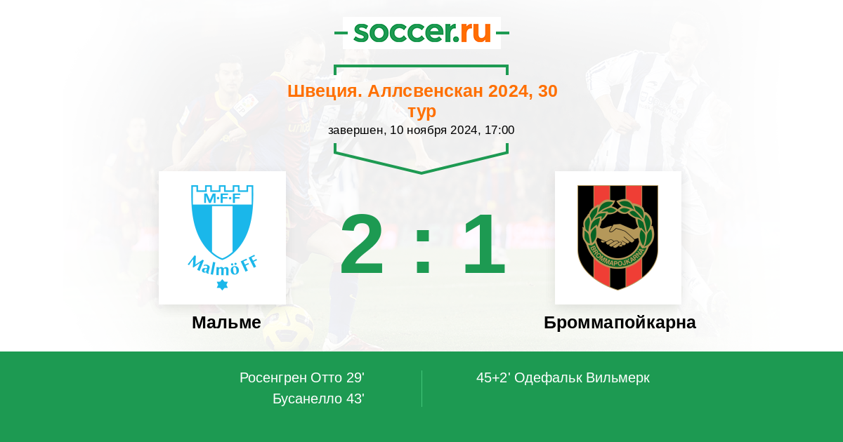 45+2' (2:1) Одефальк Вильмерк (10) (Карлссон Хлинур (2))