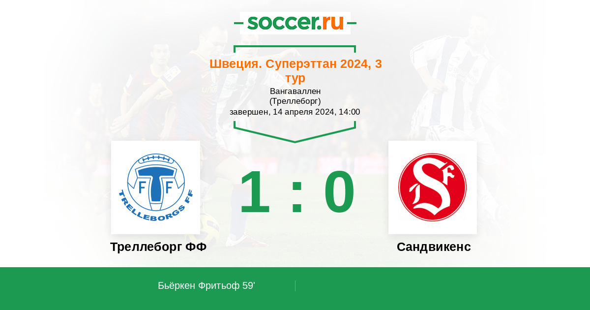 59' (1:0) Бьёркен Фритьоф (2)