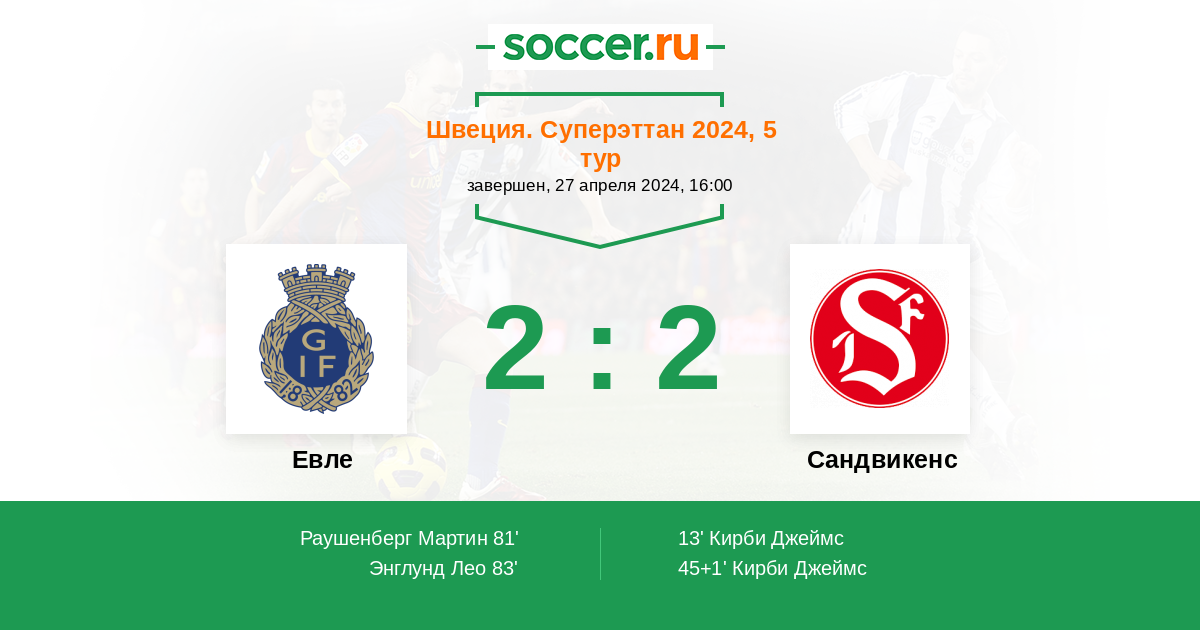 Протокол матча Евле против Сандвикенс