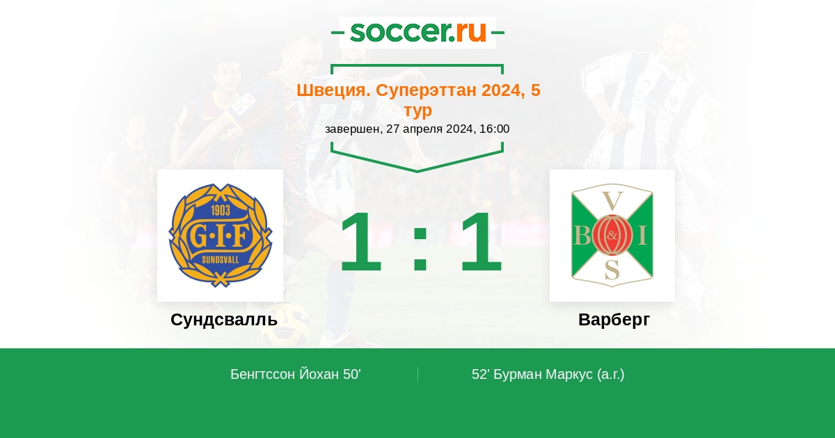52' (1:1) Автогол Бурман Маркус (7)