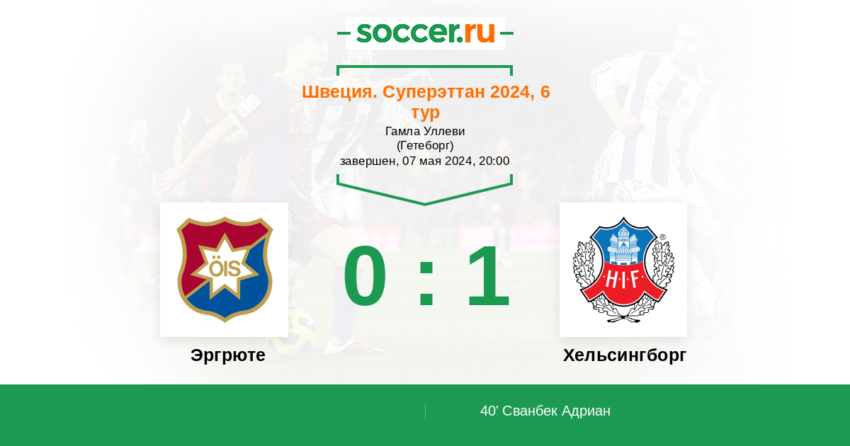 Протокол матча Эргрюте против Хельсингборг