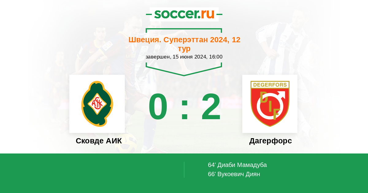 Протокол матча Сковде АИК против Дагерфорс