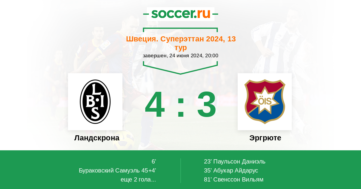 45+4' (2:2) Бураковский Самуэль (17) (Карлссон Виктор (7))