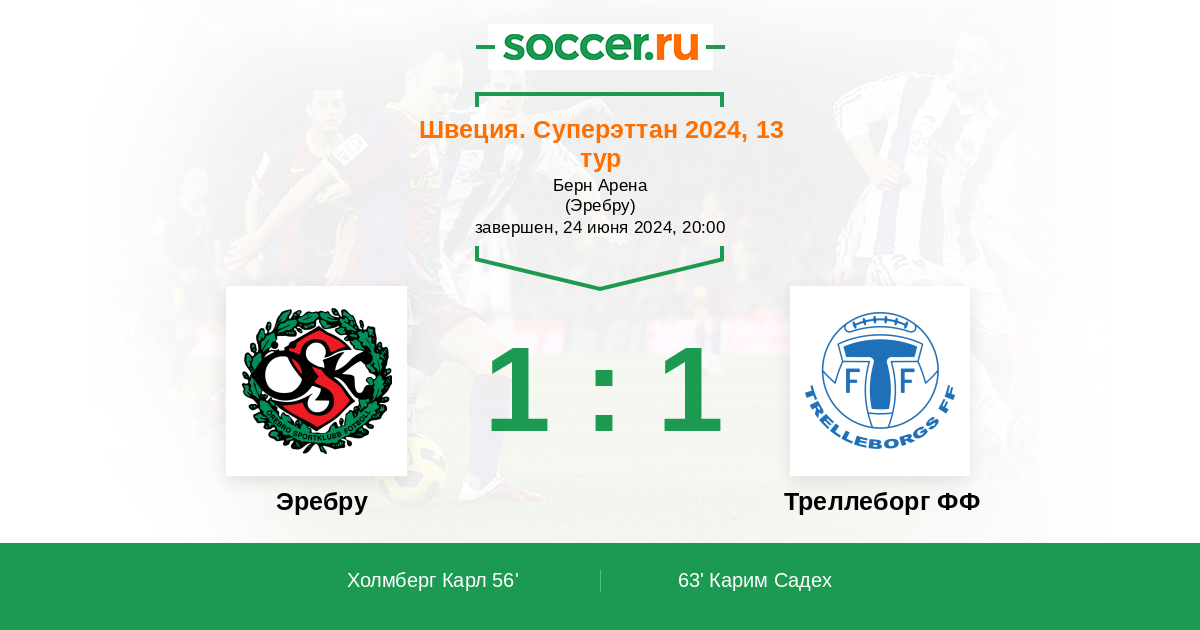 63' (1:1) Карим Садех (10) (Хорберг Феликс (20))