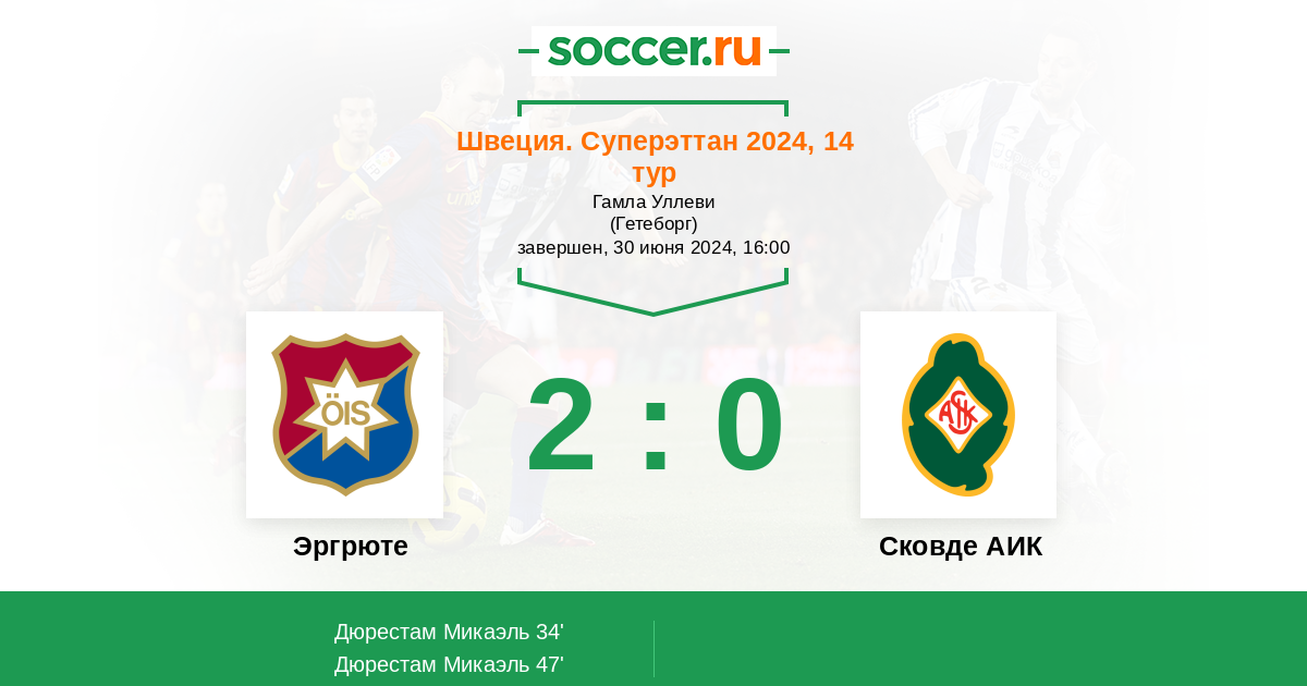 Протокол матча Эргрюте против Сковде АИК