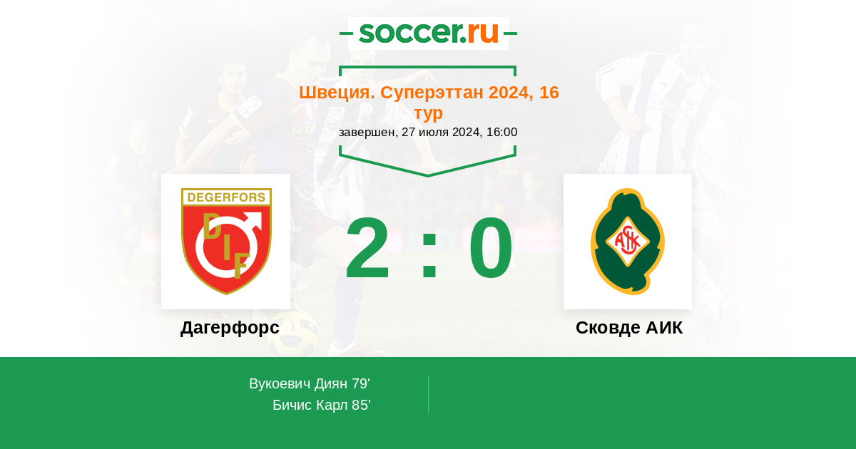 Протокол матча Дагерфорс против Сковде АИК