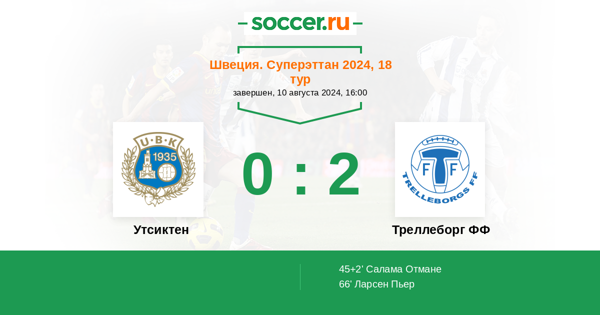 Протокол матча Утсиктен против Треллеборг ФФ