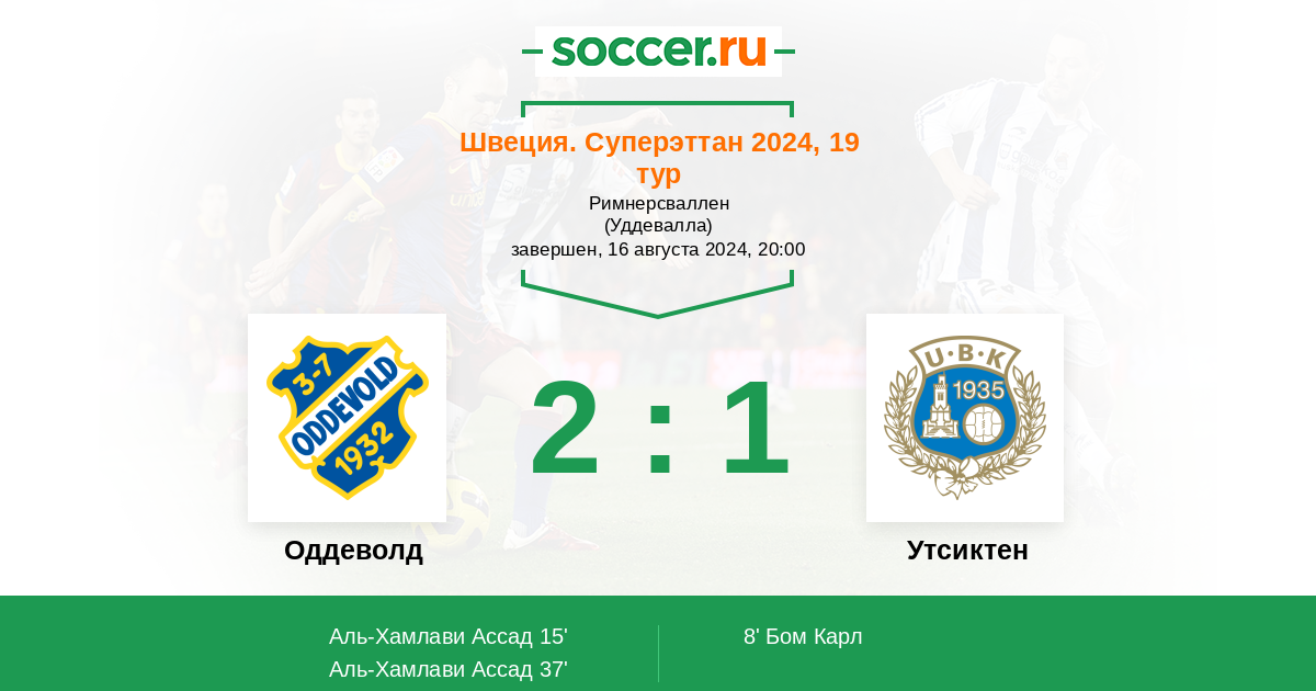 Протокол матча Оддеволд против Утсиктен