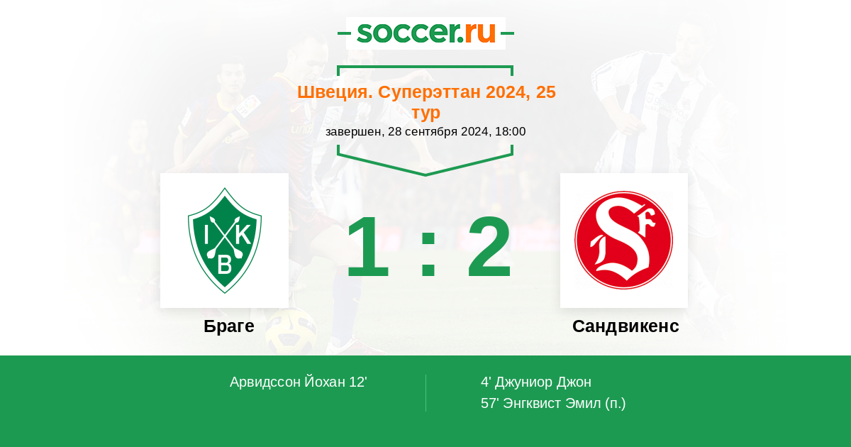 Протокол матча Браге против Сандвикенс