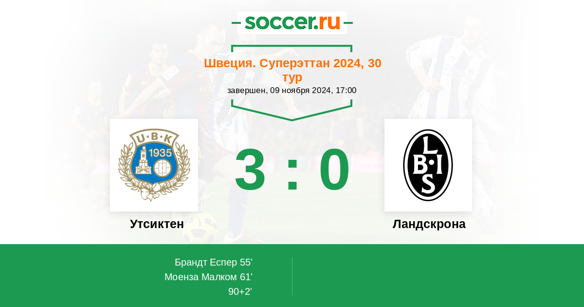 Протокол матча Утсиктен против Ландскрона