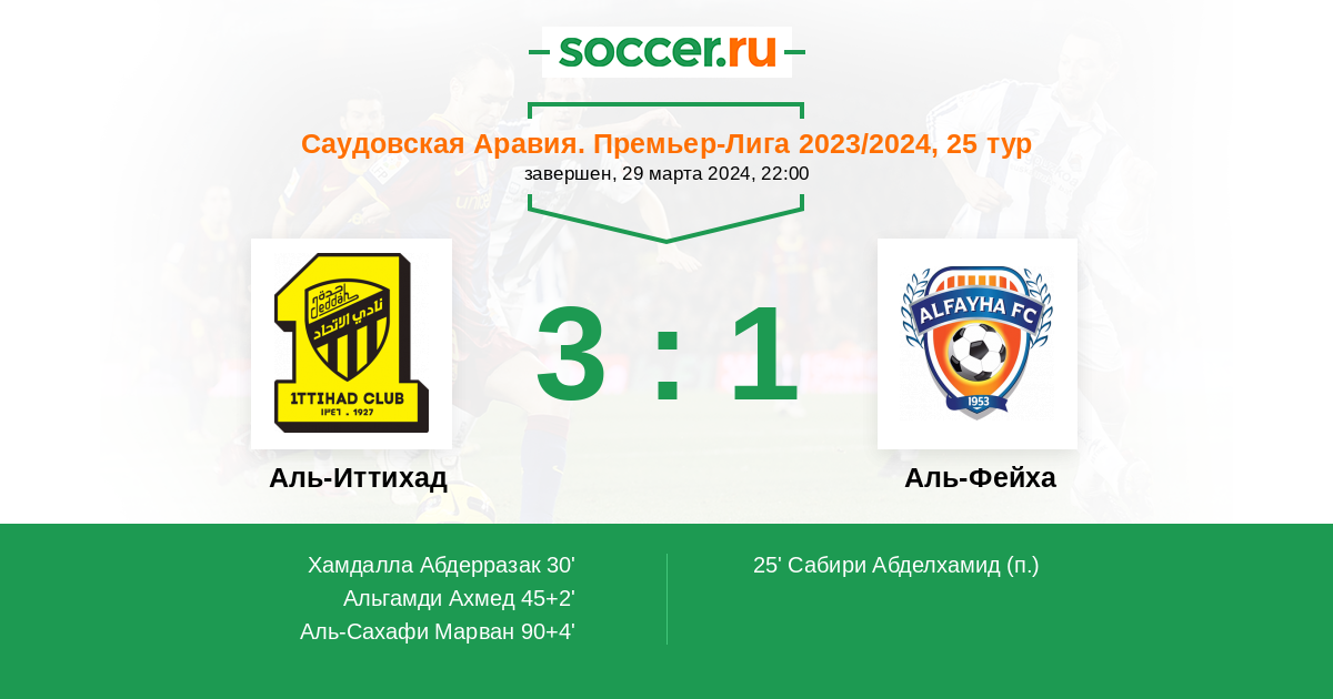 Протокол матча Аль-Иттихад против Аль-Фейха