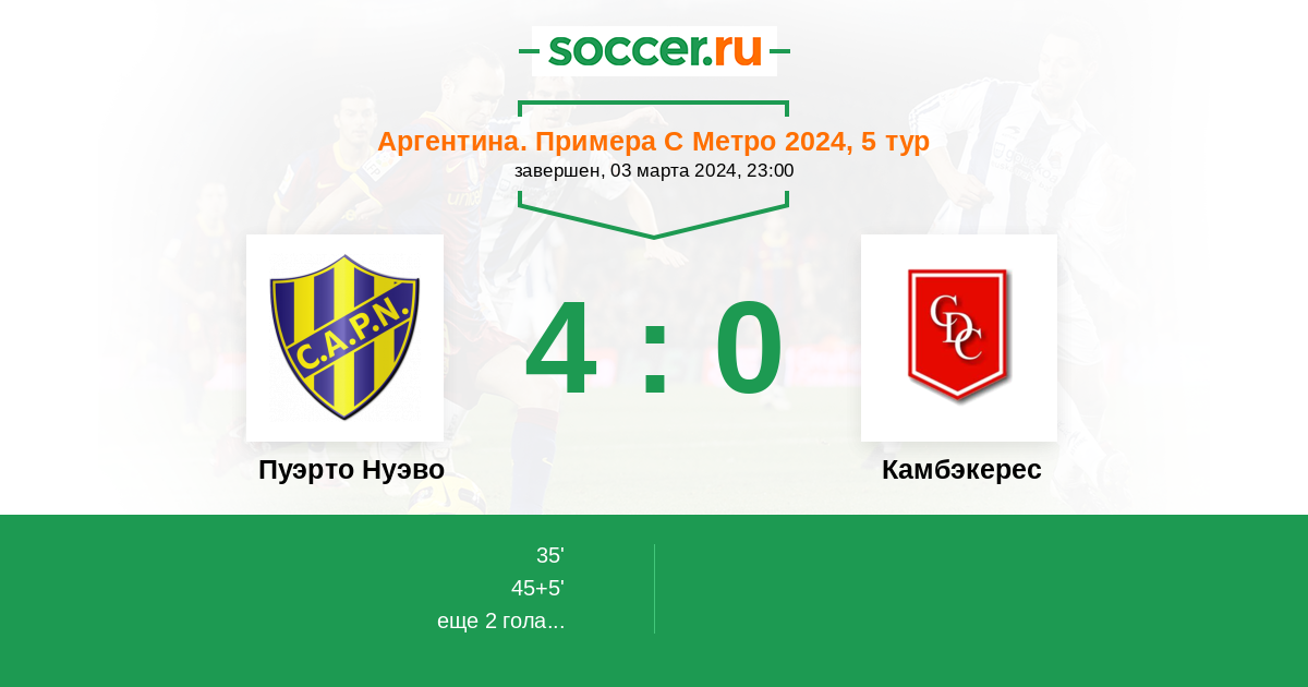 Протокол матча Пуэрто Нуэво против Камбэкерес