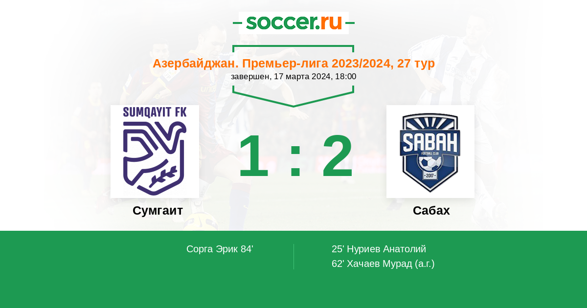 Протокол матча Сумгаит против Сабах