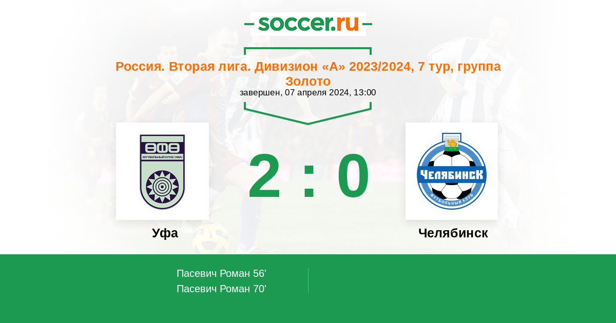 Протокол матча Уфа против Челябинск