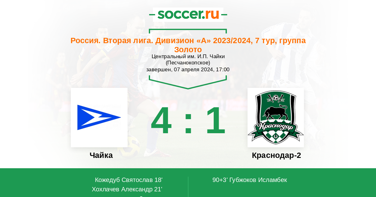 Протокол матча Чайка против Краснодар-2