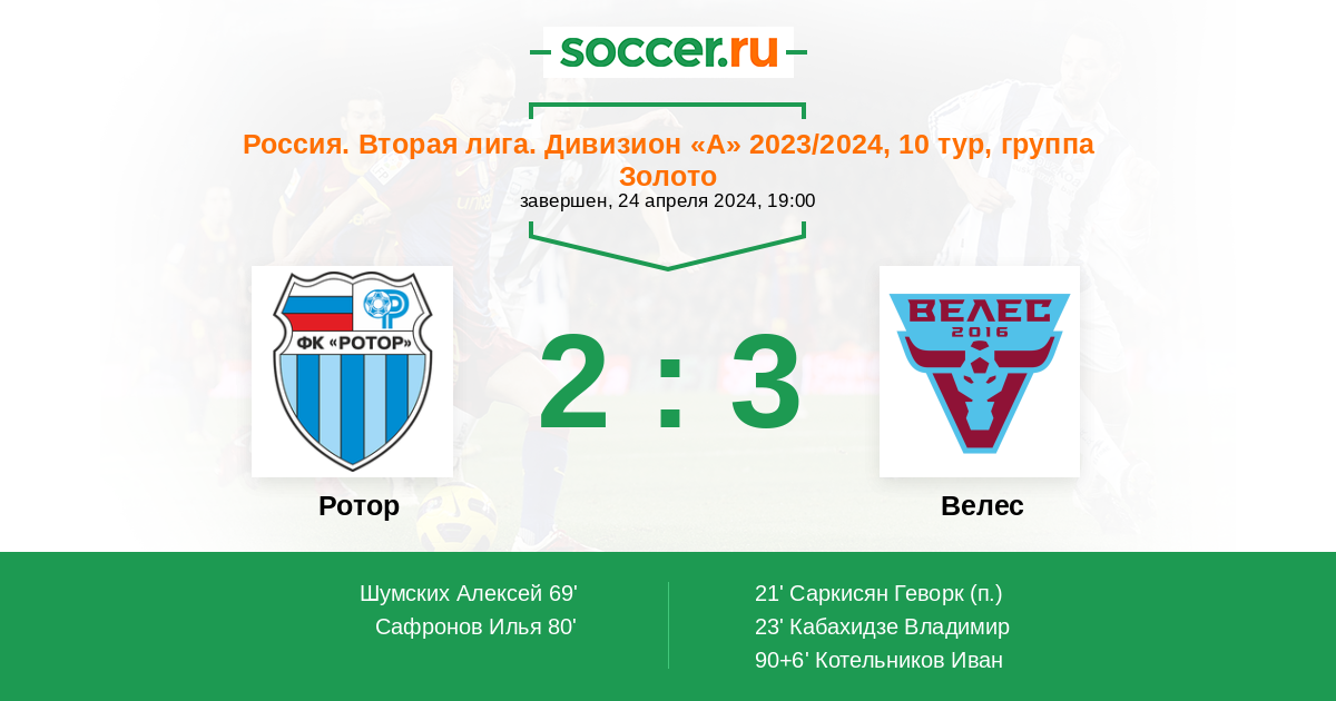 Протокол матча Ротор против Велес