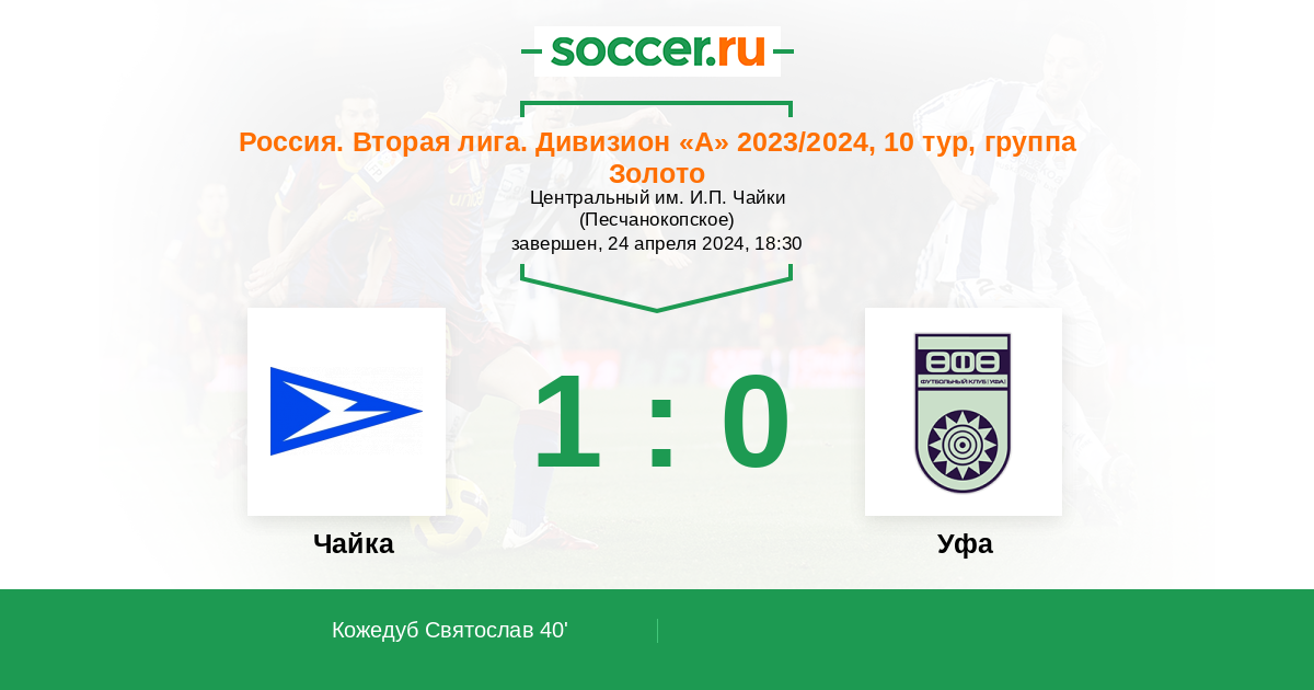Протокол матча Чайка против Уфа