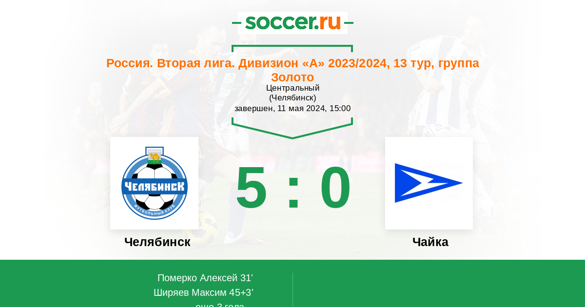 Протокол матча Челябинск против Чайка