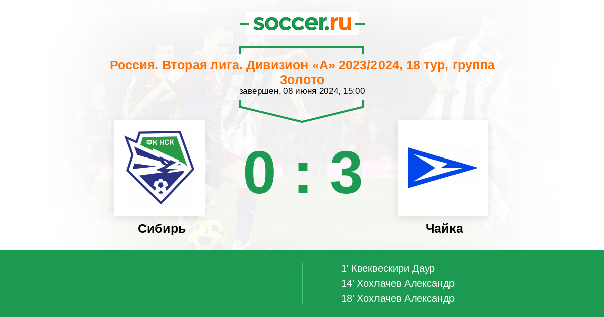 Протокол матча Сибирь против Чайка