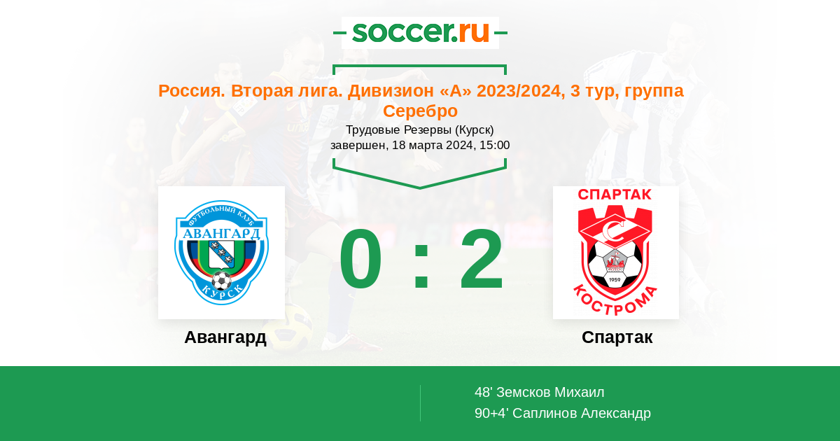 Протокол матча Авангард против Спартак Кострома