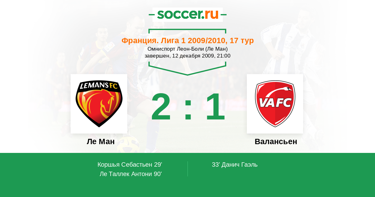 Протокол матча Ле Ман против Валансьен