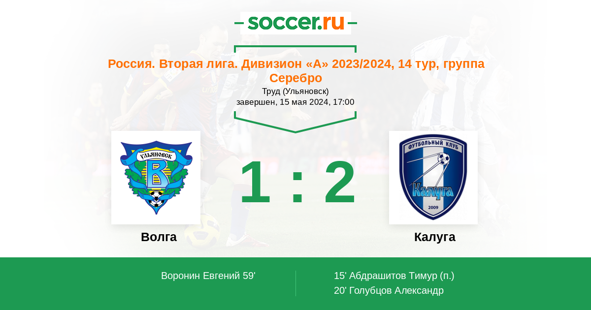 Протокол матча Волга против Калуга