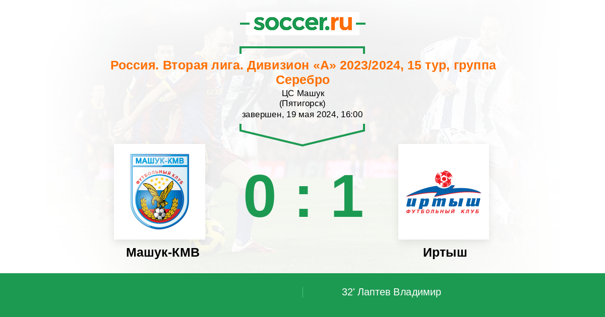 Протокол матча Машук-КМВ против Иртыш
