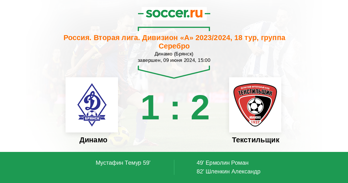 Протокол матча Динамо Брянск против Текстильщик