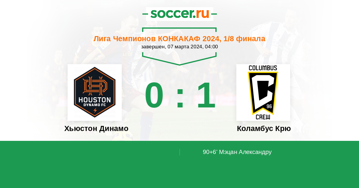Протокол матча Хьюстон Динамо против Коламбус Крю