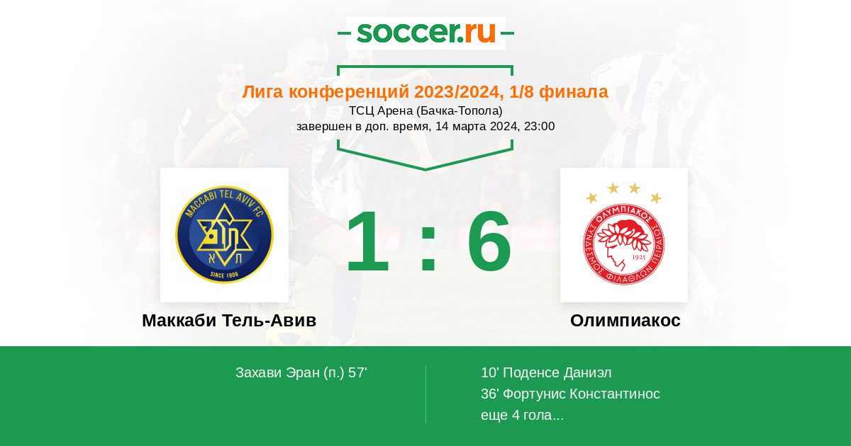Протокол матча Маккаби Тель-Авив против Олимпиакос