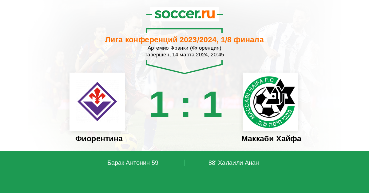 Протокол матча Фиорентина против Маккаби Хайфа