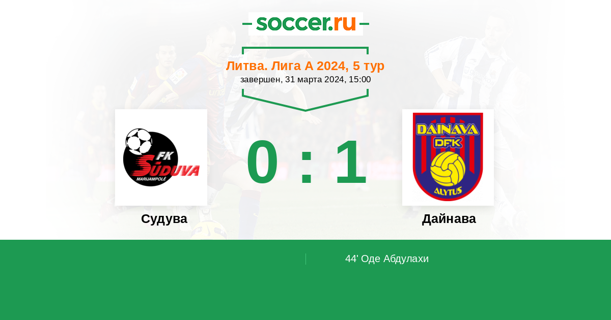 Протокол матча Судува против Дайнава