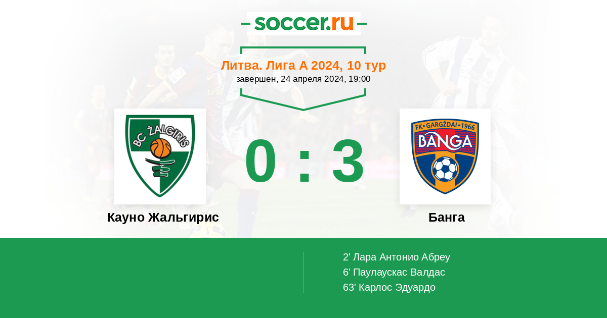 Протокол матча Кауно Жальгирис против Банга