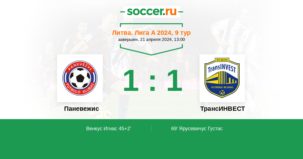 69' (1:1) Ярусевичус Густас (99)