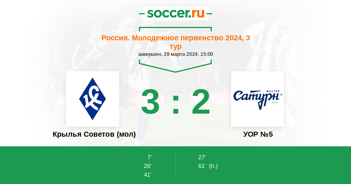 Протокол матча Крылья Советов (мол) против УОР №5