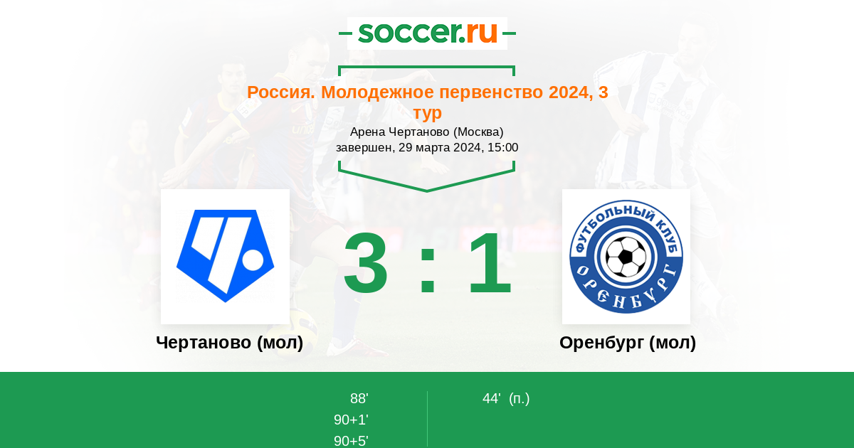 Протокол матча Чертаново (мол) против Оренбург (мол)