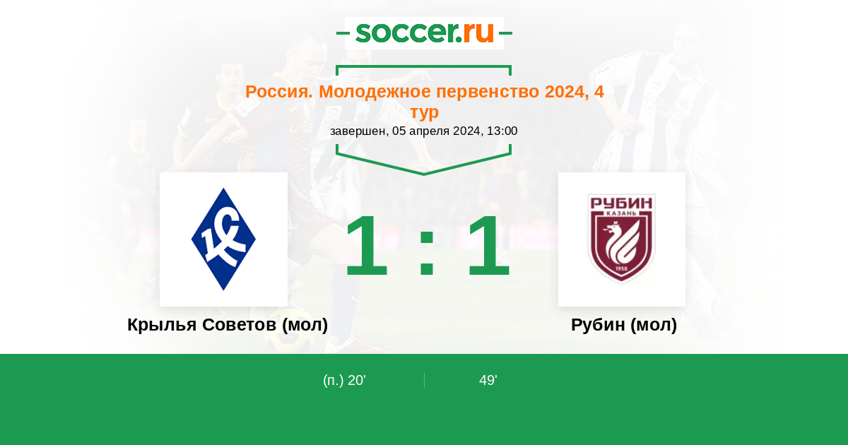 Протокол матча Крылья Советов (мол) против Рубин (мол)