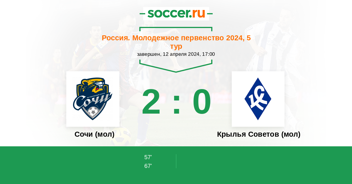 Протокол матча Сочи (мол) против Крылья Советов (мол)