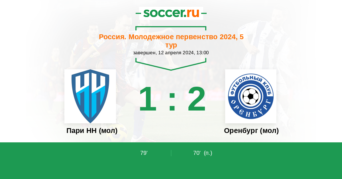 Протокол матча Пари НН (мол) против Оренбург (мол)