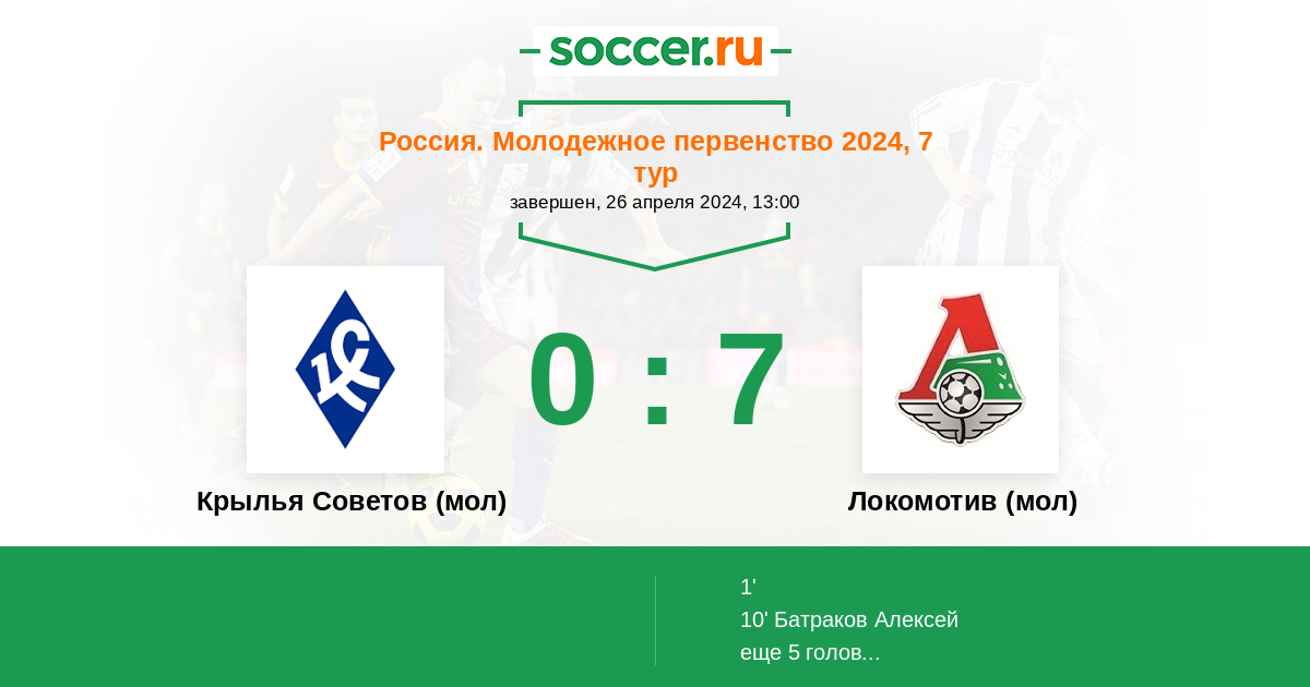 Протокол матча Крылья Советов (мол) против Локомотив (мол)
