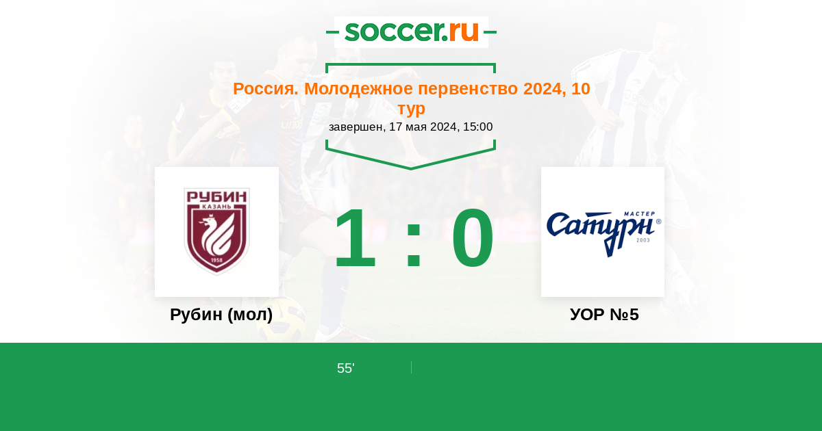 Протокол матча Рубин (мол) против УОР №5