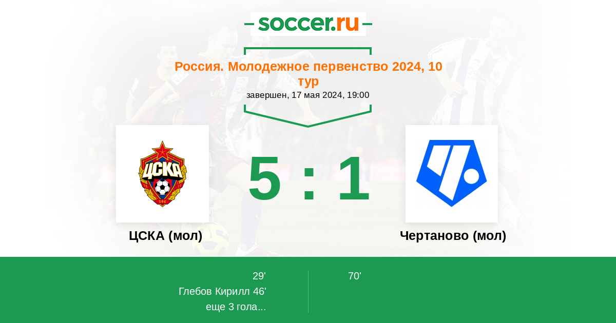 Протокол матча ЦСКА (мол) против Чертаново (мол)