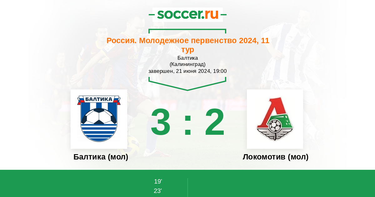 Протокол матча Балтика (мол) против Локомотив (мол)