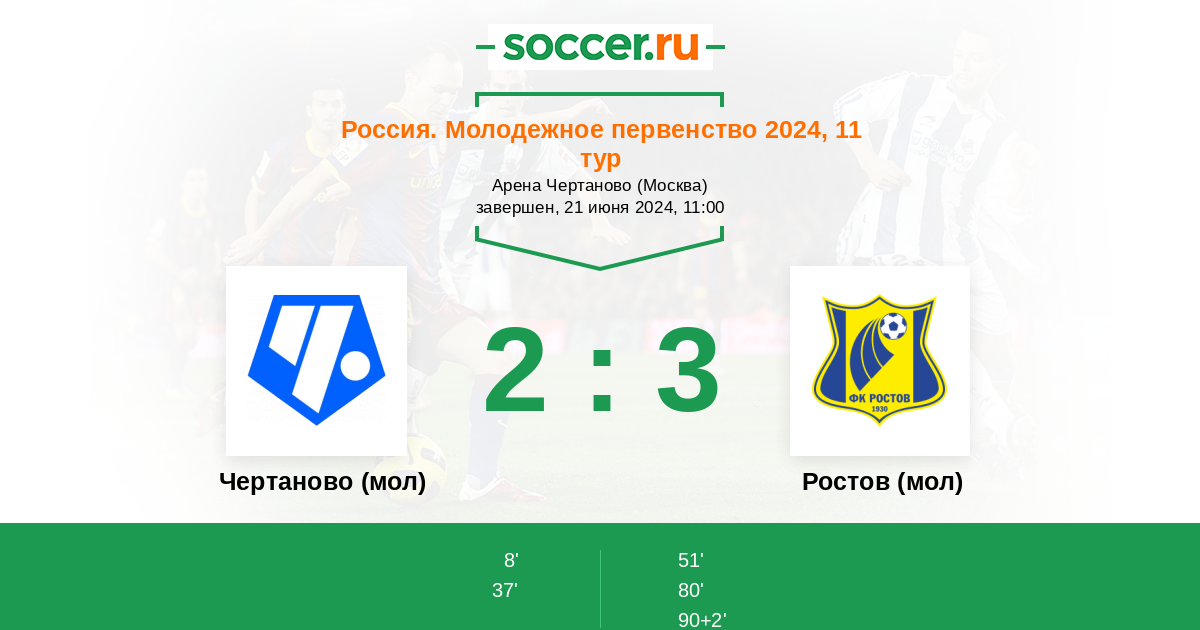 Протокол матча Чертаново (мол) против Ростов (мол)