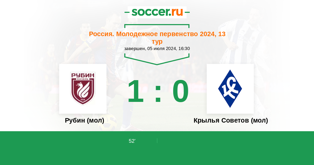 Протокол матча Рубин (мол) против Крылья Советов (мол)